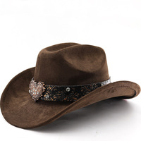 2025 סתיו חורף אופנה אופנתי מסוגנן זמש כובע קאובוי מערבי טבעוני עם חגורת חום רחבה